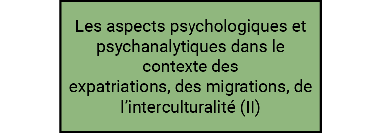 - Spécialiste des problématiques de l’expatriation et de la migration et en psychanalyse multifamiliale.
